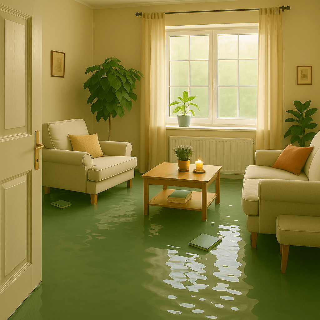 Скрытые утечки или резкий выброс воды приводят к намоканию стен, пола и перекрытий.